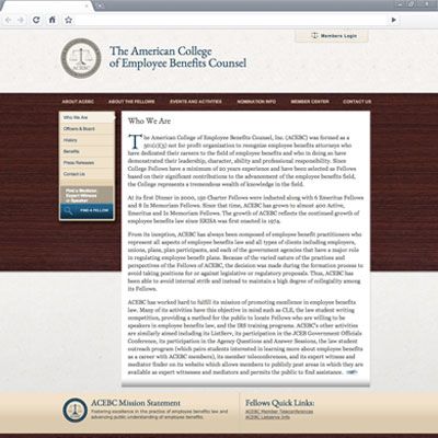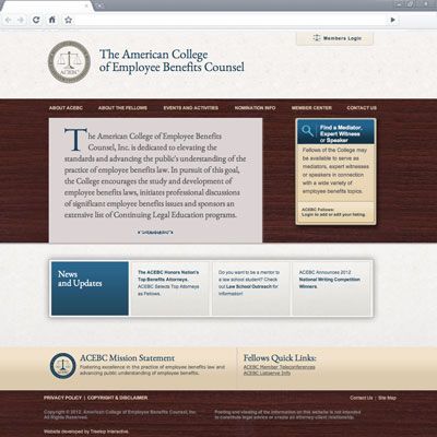 Treetop Interactive contracted us to partner with them on redesigning the American College of Employee Benefits Council. Knowing their audience well, they wanted a design that provided a modern “lawyerly” feel.
